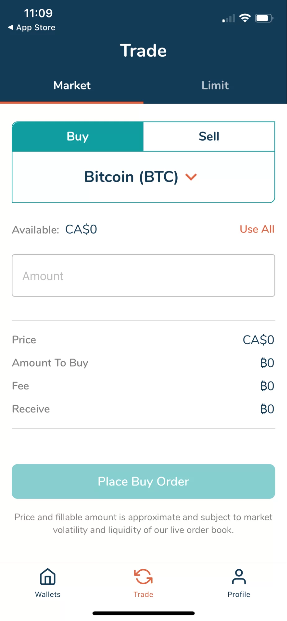 The iOS app is easy to use and offers a modern interface like the desktop platform. There is live charting where you can find volume and order book data. Easily deposit funds to your account, and click on your profile tab for your referral details.