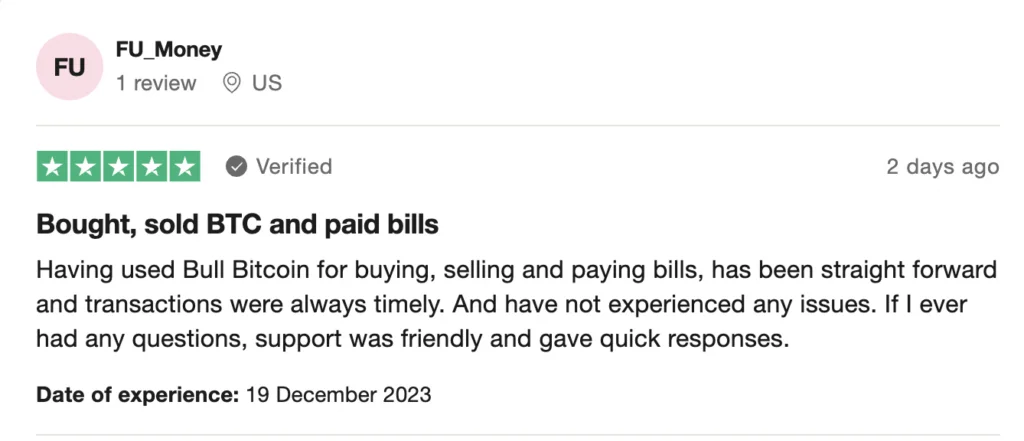 That said, there is a level of trust involved, as you’re not buying the Bitcoin directly yourself—you’ll need to wait for it to be sent to your wallet after placing your order. From my experience with Bull Bitcoin, they have built a strong reputation in the Canadian crypto community, which helps reinforce that trust.
